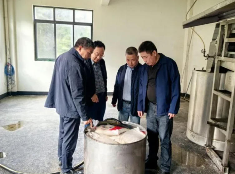 考察团先后参观珍谷酒业的酒窖、生产线以及杨梅酒和白酒等特色产品的创新成果,认真听取酒厂的历史背景、设施配置、生产能力以及市场销售等情况,通过深入实地详细了解珍谷酒业的实际困难和发展规划。